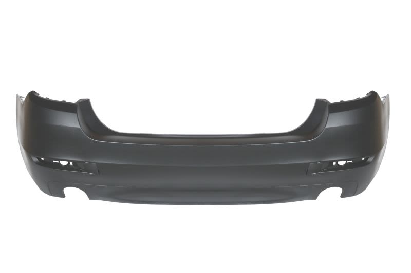 Zderzak (tył, z otworami na parkomat, do malowania, wycięcie na rurę wydechową: podwójną, z lewej) pasuje do: BMW 5 F10, F11 Sedan 12.09-06.13