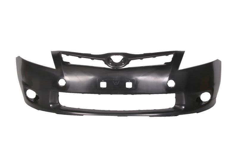 Zderzak (przód, bez Hybrid, z otworami na halogeny, czarny, certyfikat THATCHAM) pasuje do: TOYOTA AURIS E15 04.10-09.12
