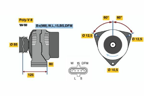 Dodatkowe informacje o produkcie Alternator 0 124 655 036 BOSCH