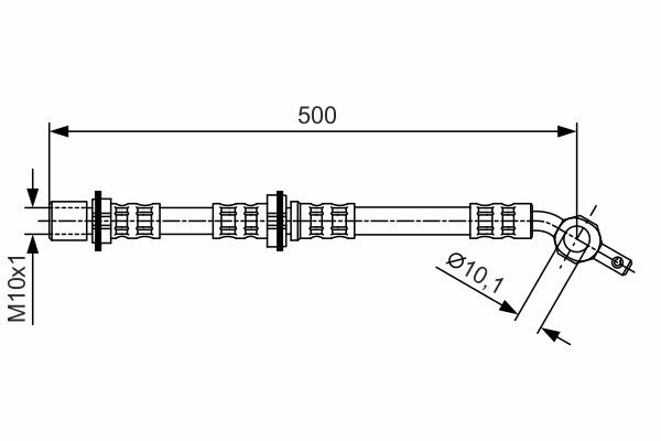 Przewód hamulcowy elastyczny przód L (dł. 500mm,śr. 10mm, M10x1, banjo) pasuje do: TOYOTA STARLET 1.0/1.3/1.5D 10.84-12.89