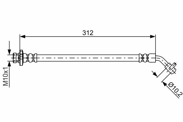 Przewód hamulcowy elastyczny tył L (dł. 312mm,śr. 10,2mm, M10x1) pasuje do: NISSAN PATHFINDER III 2.5D/3.0D/4.0 01.05-