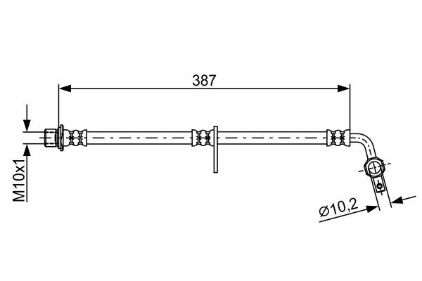 Przewód hamulcowy elastyczny przód L (dł. 387mm,śr. 10,2mm, M10x1) pasuje do: LEXUS LX; TOYOTA LAND CRUISER 100 4.2D/4.7 01.98-03.08