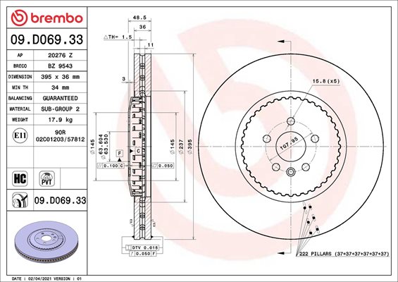 Dodatkowe informacje o produkcie Tarcza hamulcowa, TWO-PIECE DISCS LINE 09.D069.33 BREMBO