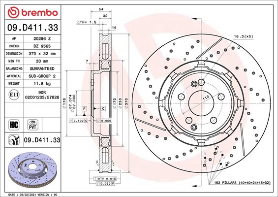 Dodatkowe informacje o produkcie Tarcza hamulcowa, TWO-PIECE DISCS LINE 09.D411.33 BREMBO
