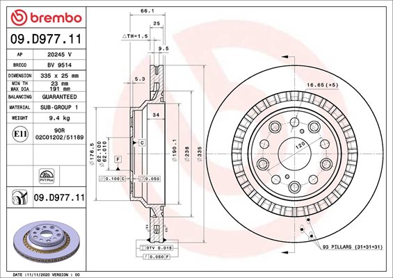 Dodatkowe informacje o produkcie Tarcza hamulcowa, COATED DISC LINE 09.D977.11 BREMBO