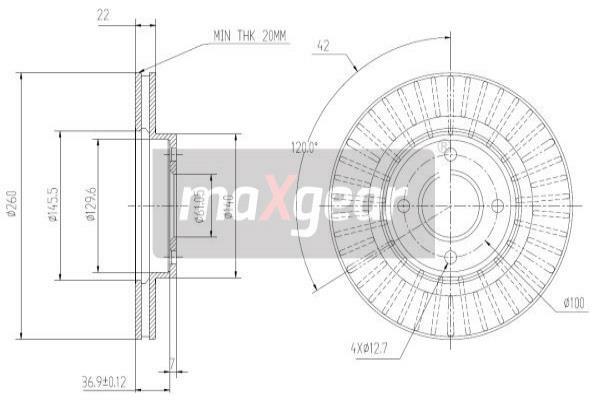 | Grubość tarczy hamulcowej [mm] | 22 |