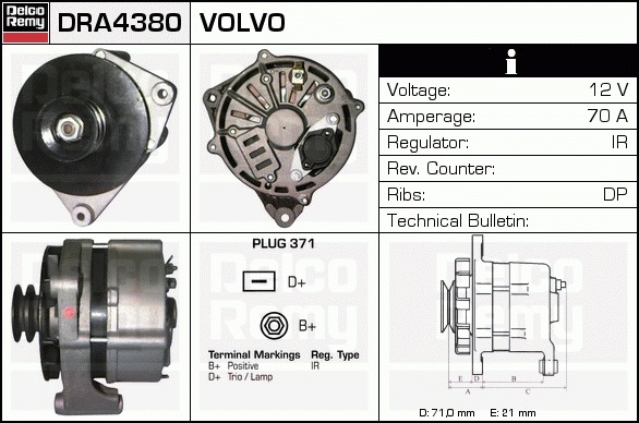 Dodatkowe informacje o produkcie Alternator, Light duty Europe Reman DRA4380 DELCO REMY AUTOMOTIVE EUROPE