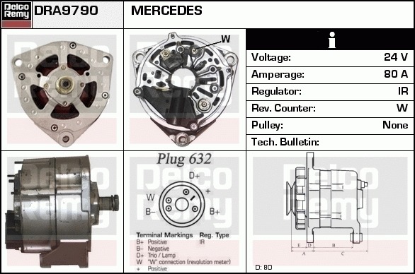 Dodatkowe informacje o produkcie Alternator, Heavy duty Reman DRA9790 DELCO REMY AUTOMOTIVE EUROPE