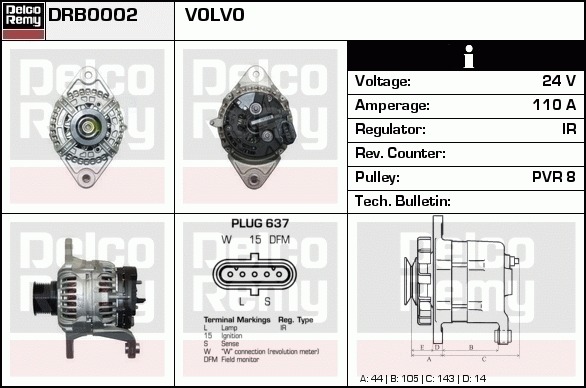 Dodatkowe informacje o produkcie Alternator, Heavy duty Reman DRB0002 DELCO REMY AUTOMOTIVE EUROPE