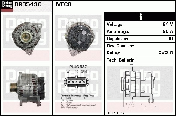 Dodatkowe informacje o produkcie Alternator, Heavy duty Reman DRB5430 DELCO REMY AUTOMOTIVE EUROPE