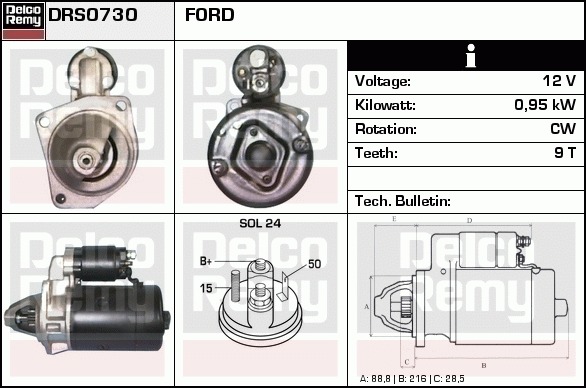 Dodatkowe informacje o produkcie Rozrusznik, Light duty Europe Reman DRS0730 DELCO REMY AUTOMOTIVE EUROPE