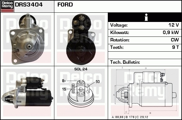 Dodatkowe informacje o produkcie Rozrusznik, Light duty Europe Reman DRS3404 DELCO REMY AUTOMOTIVE EUROPE