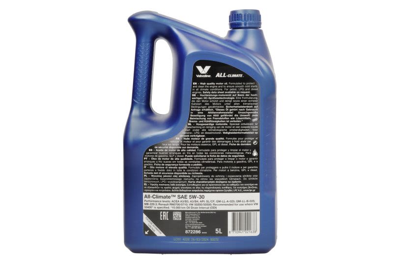 Dodatkowe informacje o produkcie Olej, All Climate Motor Oil 5W-30 872286 VALVOLINE