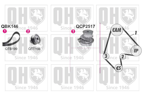 Dodatkowe informacje o produkcie Pompa wodna + zestaw paska rozrządu QBPK1460 QUINTON